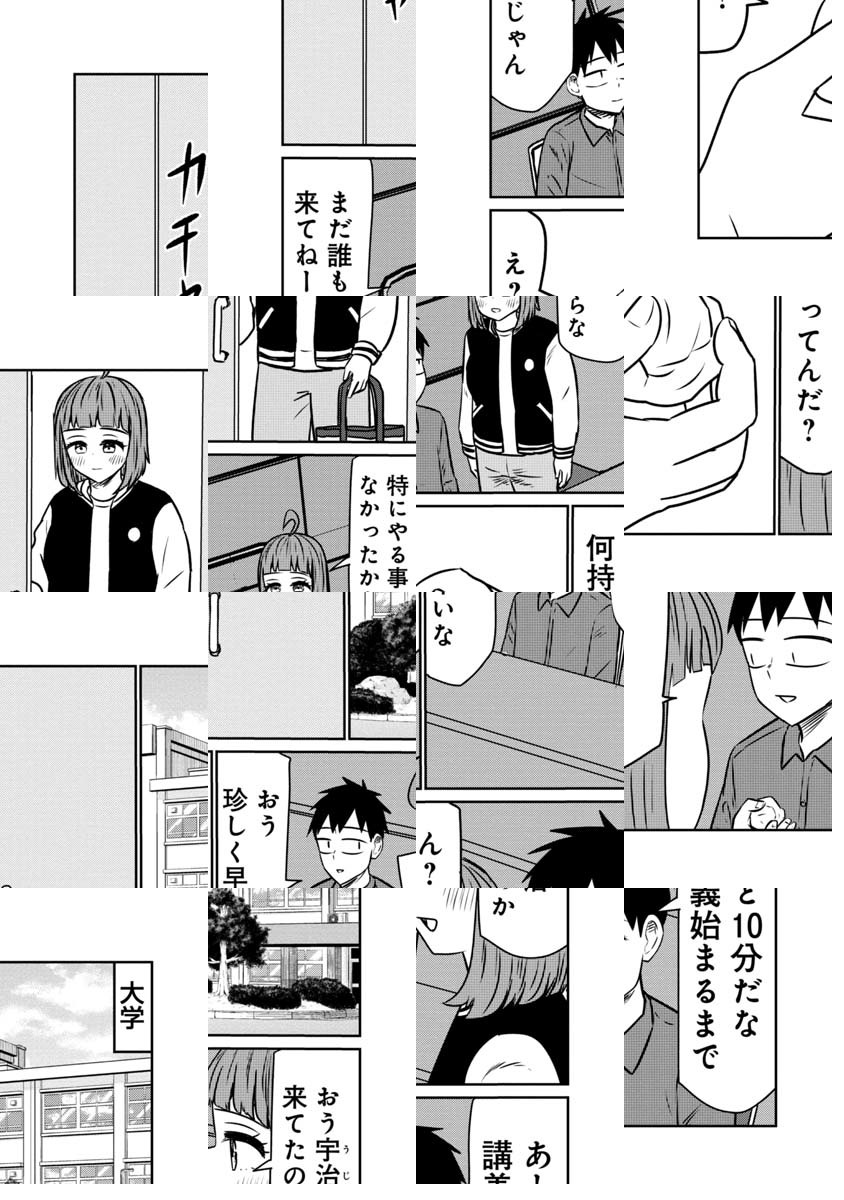 大学生の宇治は、同級生の桜井さんへの片思いの相談する為、桜井さんと親友で、自分の友人でもある鯖江に相談するが、二人っきりの居酒屋で変な雰囲気になってしまい…友情を取るか性欲を取るか!理性ギリギリキャンパスライフ開幕!!