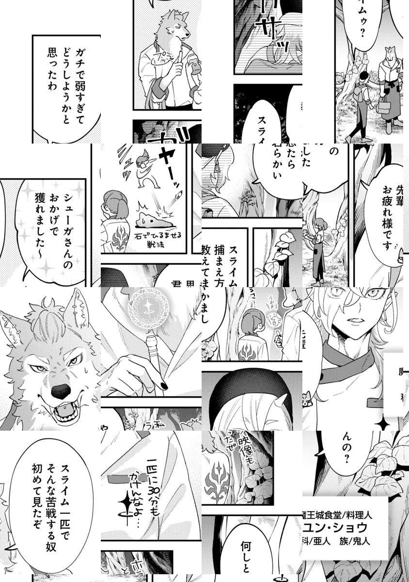 1巻の続きは5話から▼▼魔王城の食堂で働く人間・ツムギは、実は異世界転移者。元の世界で死にかけのホームレスだった為、衣食住が保障される夢の生活を死守するべく、ガラの悪い コワモテ魔族たちに負けず奮闘するが――!? 魔王城を舞台にした異世界グルメラブコメディ。