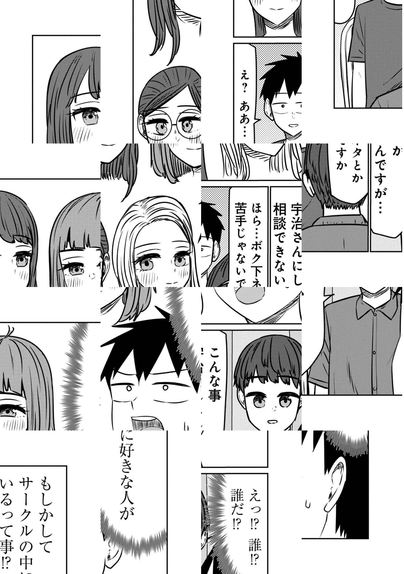 大学生の宇治は、同級生の桜井さんへの片思いの相談する為、桜井さんと親友で、自分の友人でもある鯖江に相談するが、二人っきりの居酒屋で変な雰囲気になってしまい…友情を取るか性欲を取るか!理性ギリギリキャンパスライフ開幕!!